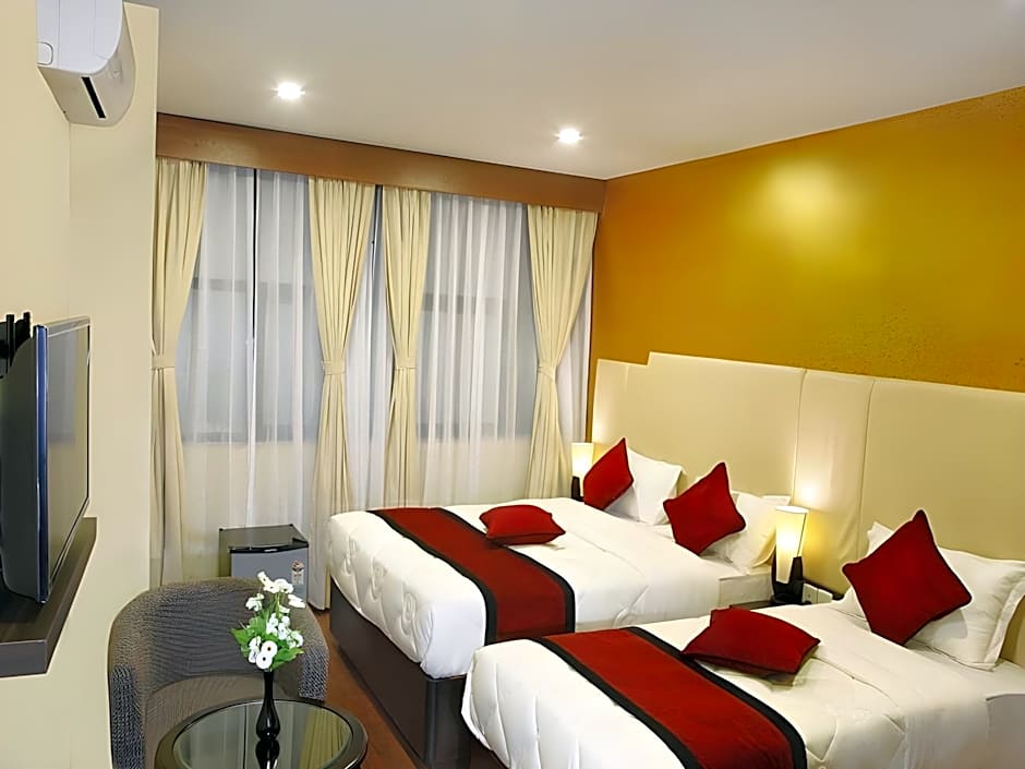 Offering views of the city, this twin/double room has air conditioning, mini-bar and seating area.